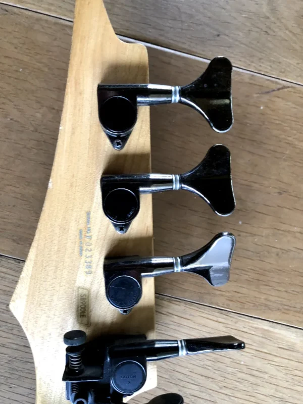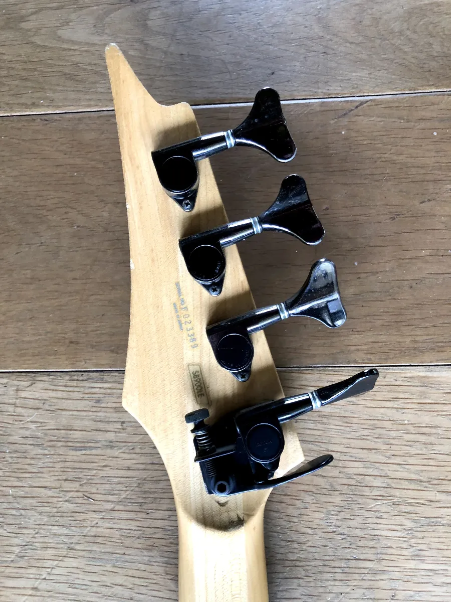 This is one of the rarest, hardest to find of all Ibanez basses. The SB900 Sabre was made in Japan between 1990-91 and only around 500 were made. It has the thinnest body and neck on any bass I’ve ever played. Super low action….. It’s incredibly light. This one has been refinished and modded with awesome Adhere Pro Z Preamp electronics for incredible tone. Will supply the original electronics as well. This bass absolutely growls. If you are in the market for a bass that won’t break your back or the bank, you won’t go wrong with this one.