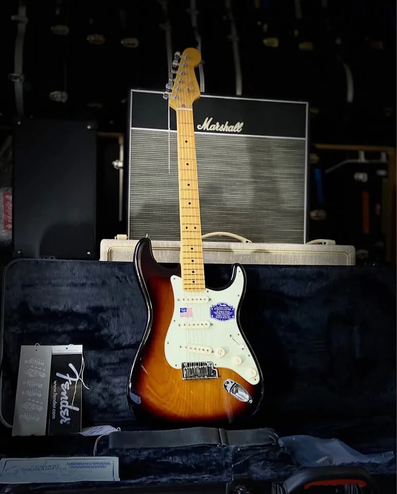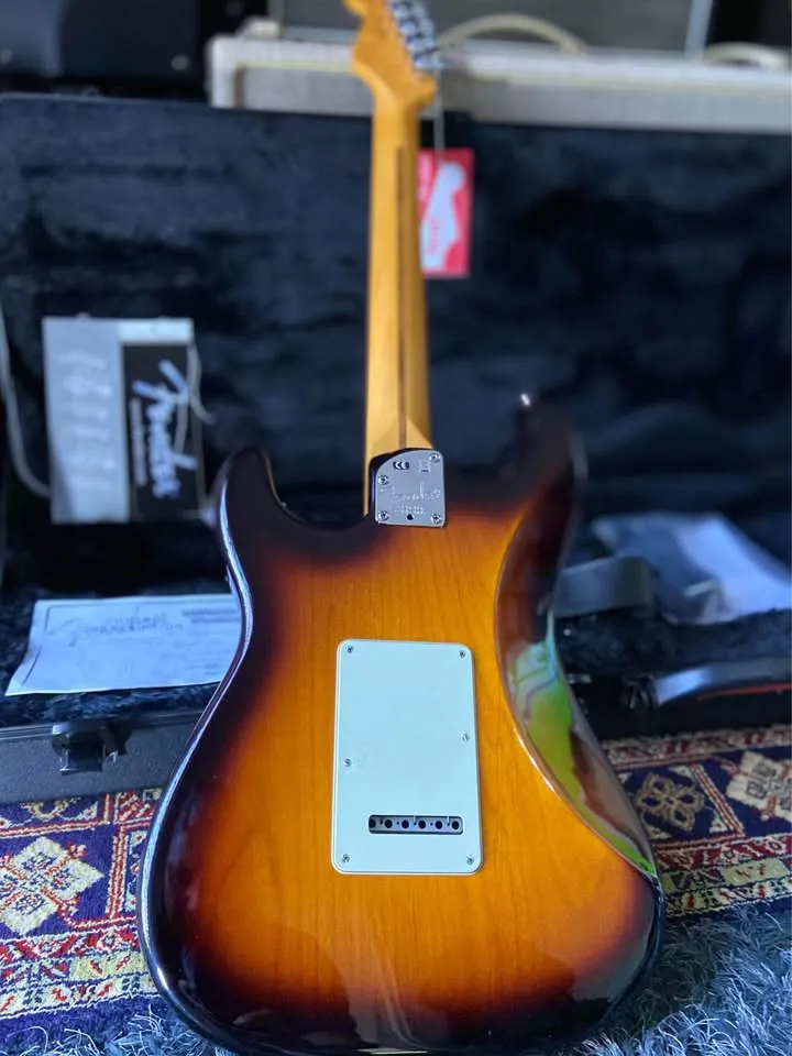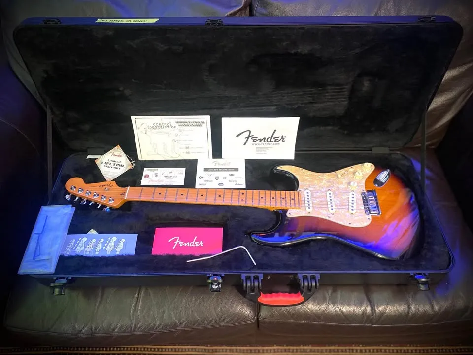 still showroom condition Original N3 Noiseless pickups S1 switch enables multiple combinations of pickups or upgraded Hot Noiseless pickups with perloid pickguard Locking tuners Maple fretboard All case candy Deluxe case