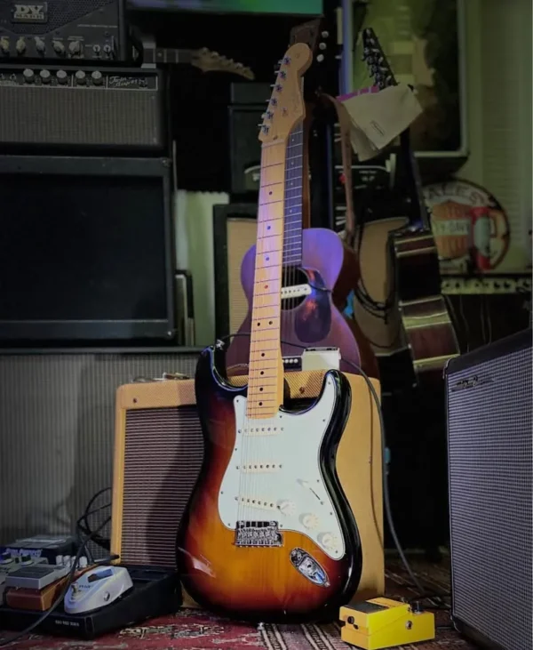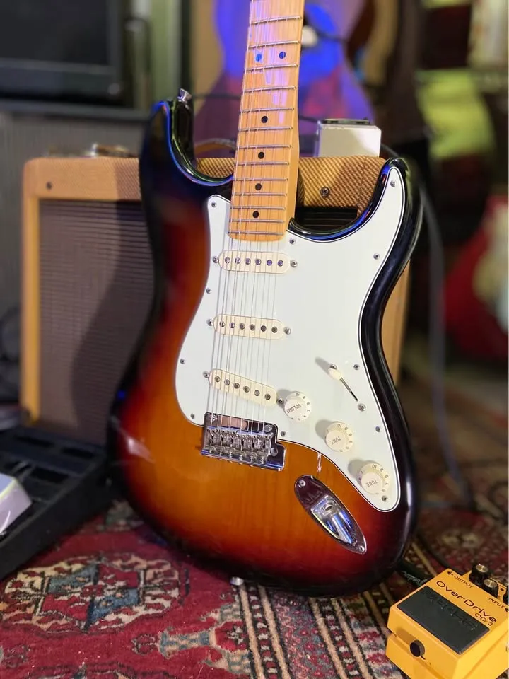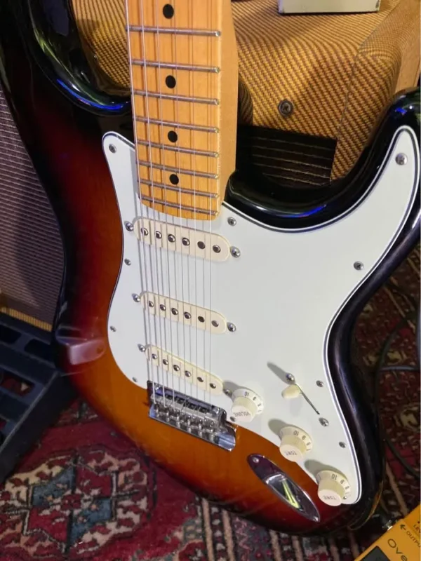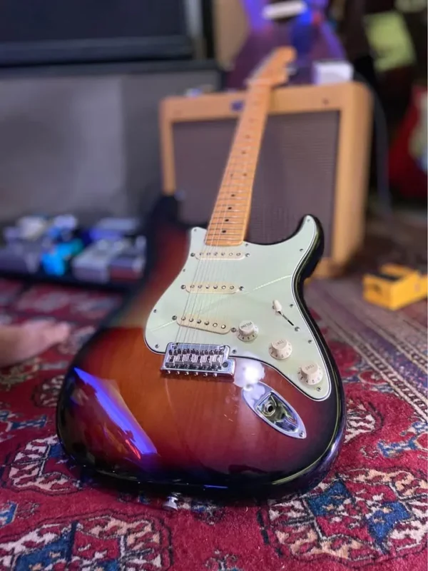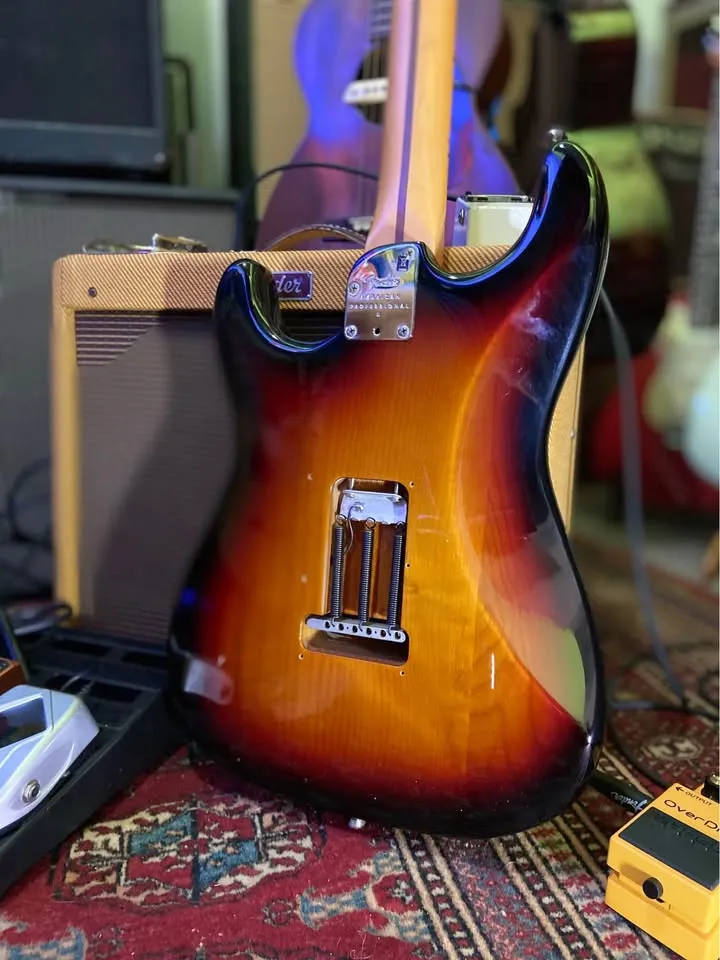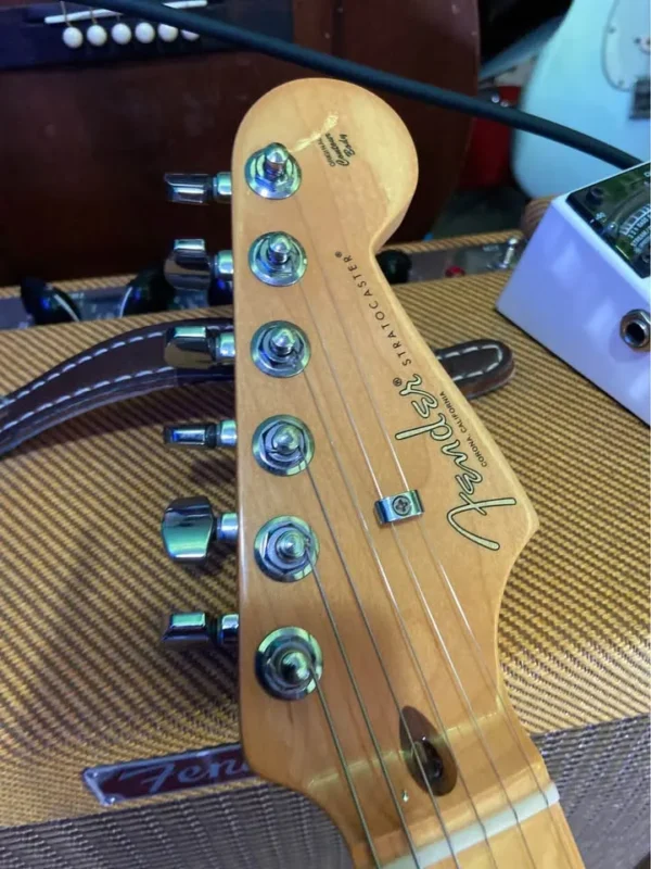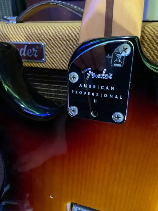 In mint condition virtually unplayed USA Pro II with S1 switch 2 point tremolo maple fretboard Staggered USA tuners Fender moulded case Case candy COA