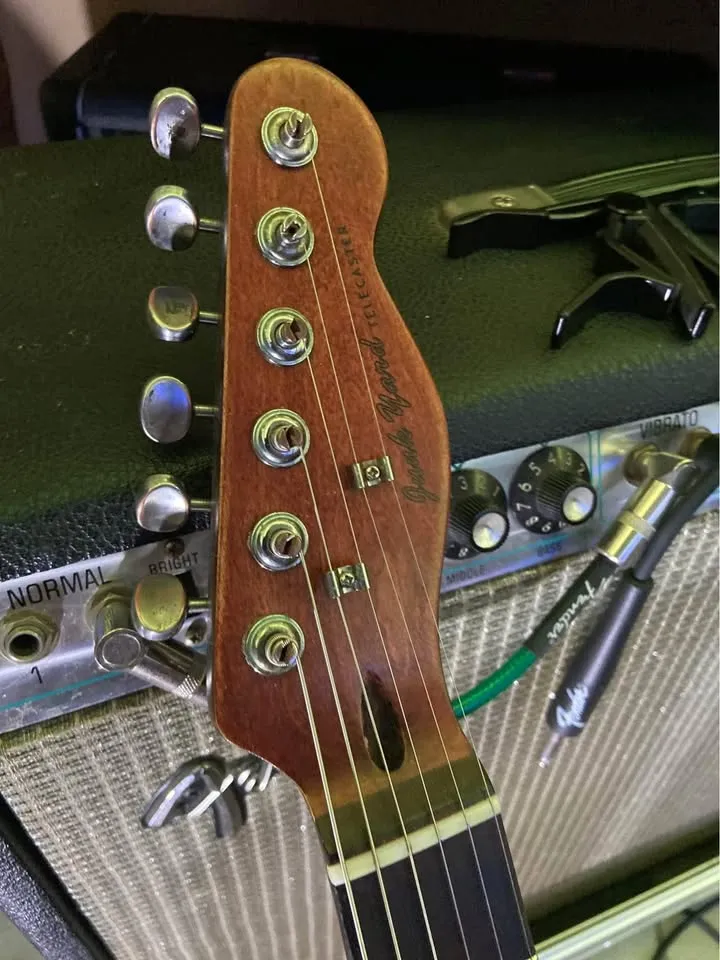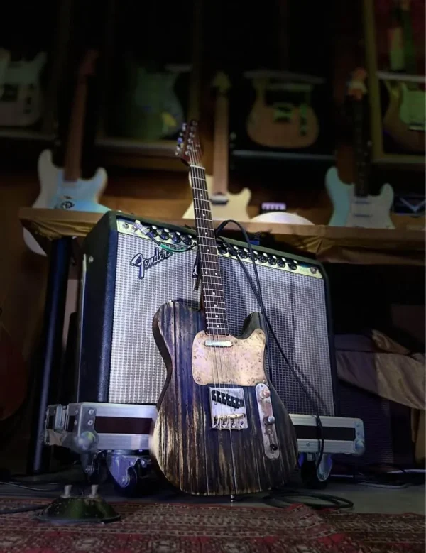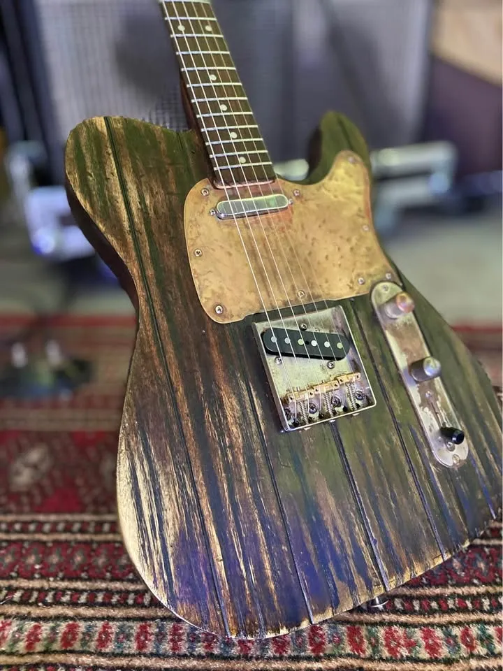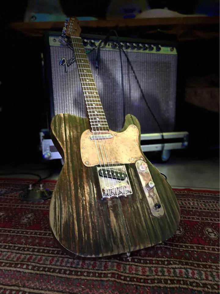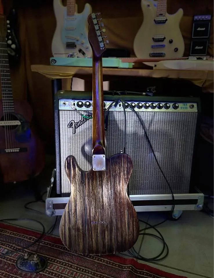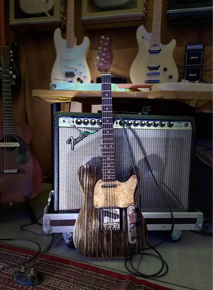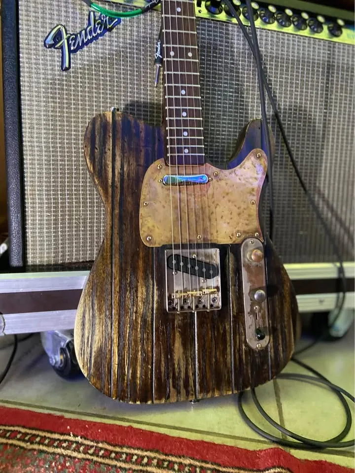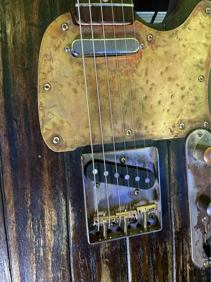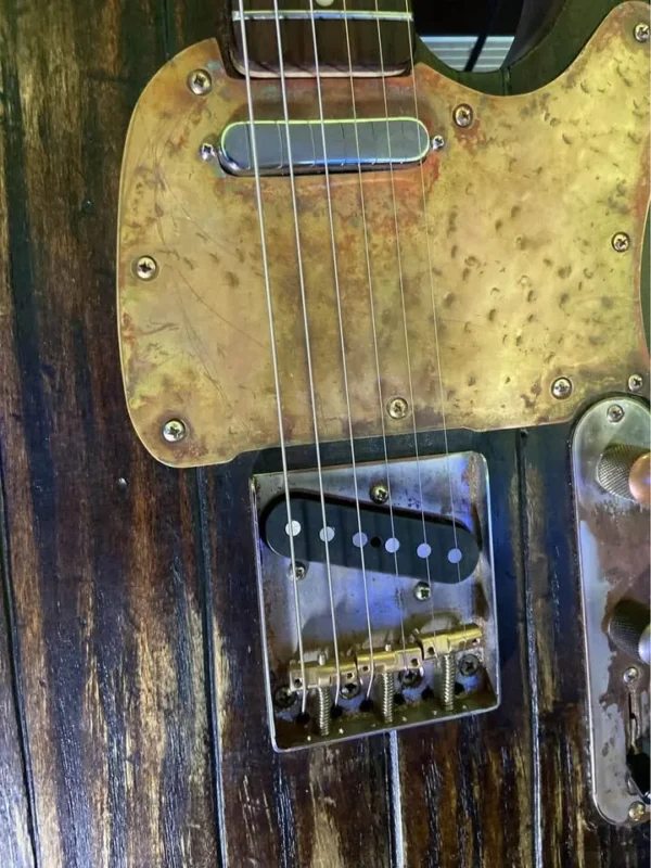 one off original Junkyard rosewood fretboard and nitrocellulose finish Brass handmade pickguard loaded with Fender Tex Mex pickups Polished Compensated brass saddles Pro luthier setup