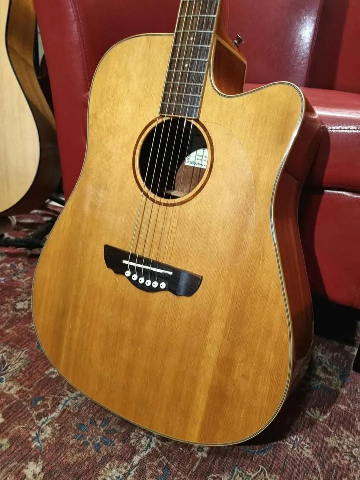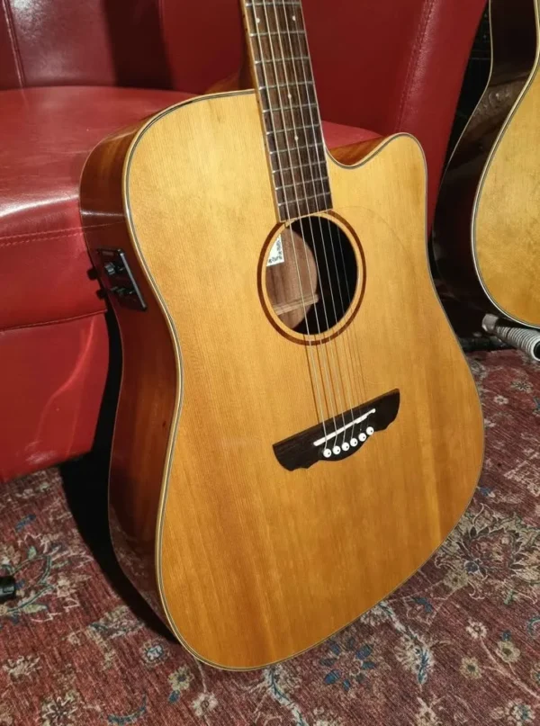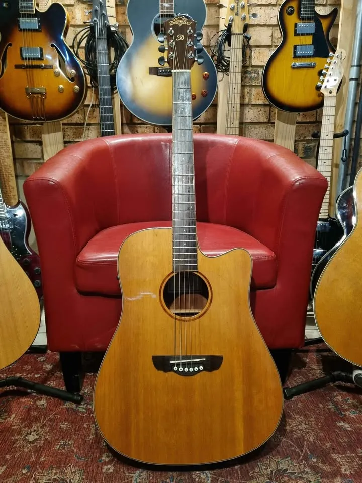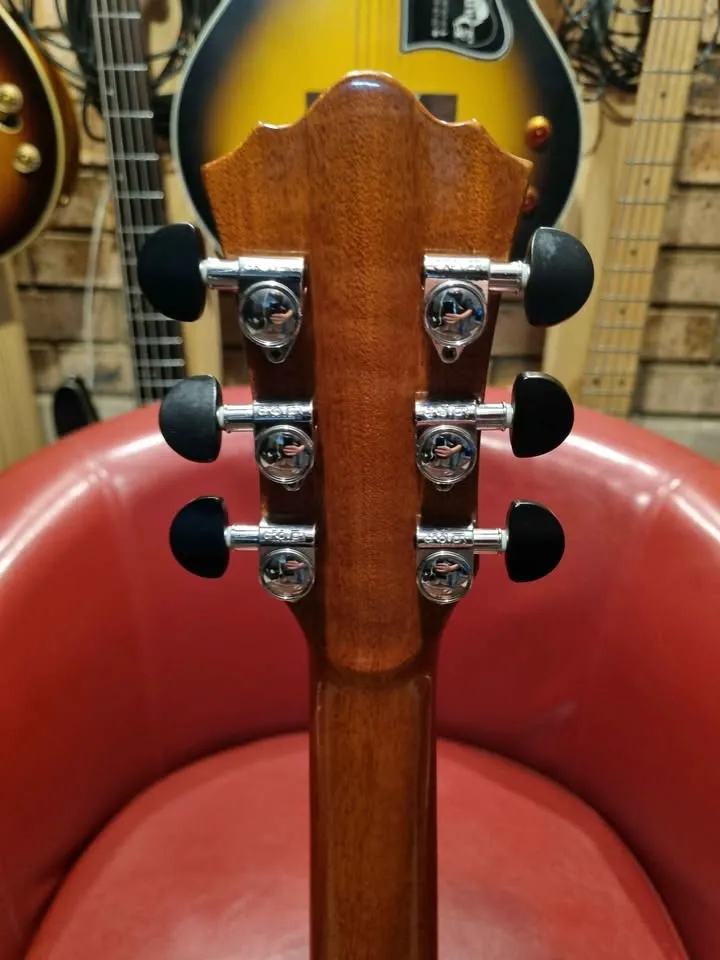 The DM707SCE features a solid top, and it sounds absolutely amazing. To compliment that, it’s fitted with top notch Grover Tuners, working like a rolls royce engine. Electronic pickup by Fishman.