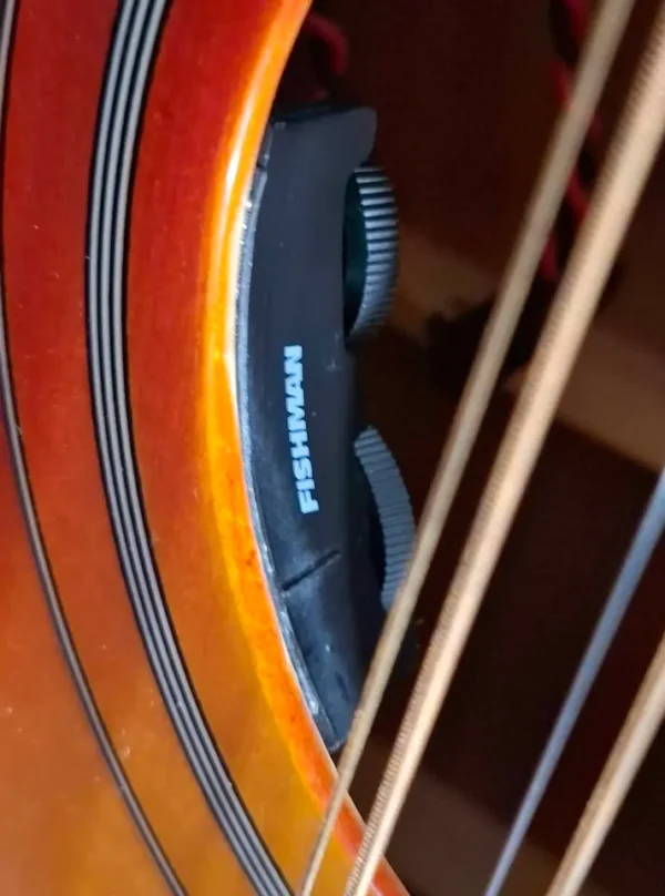 The sound hole 🕳️ Fishman pickup keeps the integrity of the Mahogany sides and solid top, in order to give a beautiful full resonance. No extra holes cut into it.
