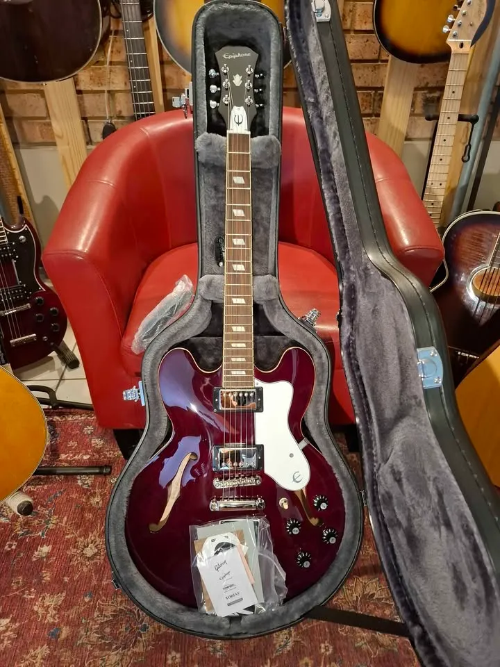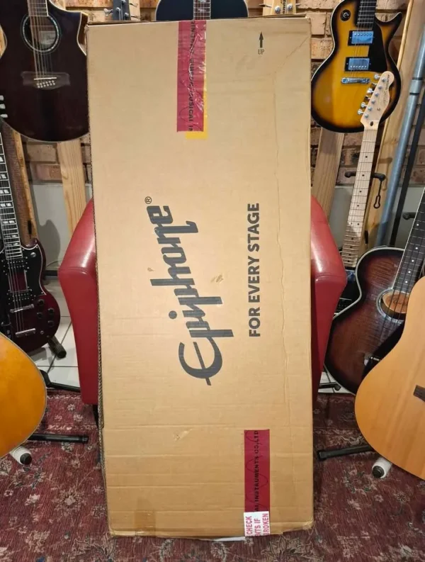 It comes with an original Epiphone hard case, and all the case candy you normally get with a new guitar.