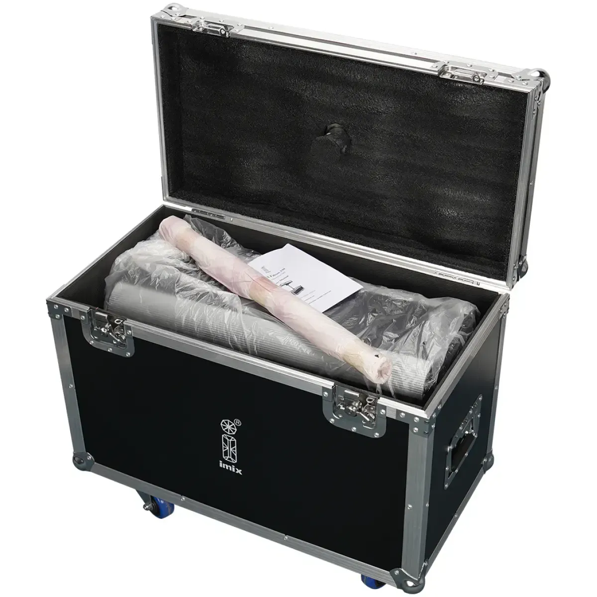 Integrated road-ready flight case with caster wheels