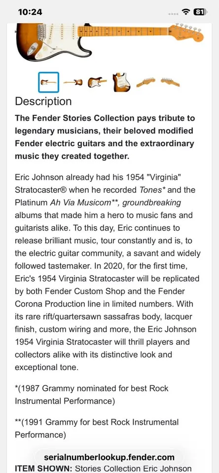 Highly collectible Ltd production Beautiful accurate reproduction of Eric Johnson’s Virginia strat All case candy