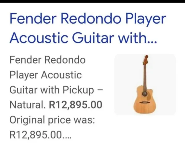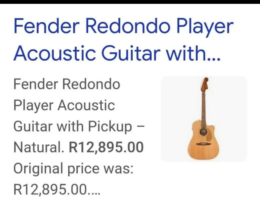 Fender Redondo Player Acoustic Guitar. Condition as new. An absolute pleasure to play. Indicative new price R12800.