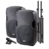 f you’re looking for a complete dual-speaker PA package, then you’ve come to the right place. Our PA-SYS15 can deliver over 2,000 watts of peak output through one active and one passive speaker. We’ve packed features like Bluetooth streaming, FM radio, and built-in EQ, into a conveniently lightweight and portable package. The collapsible, stainless steel, tripod speaker stands help amplify both speakers and are easy to set up and take down. This is the perfect PA package for any event!