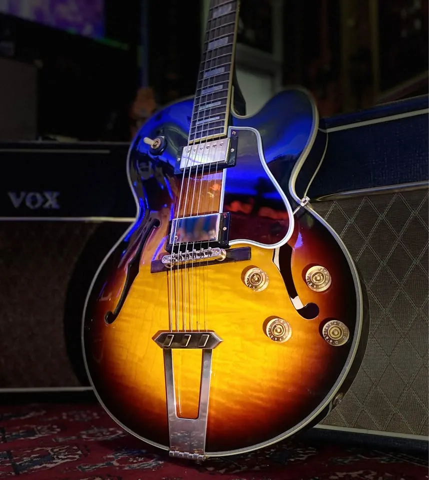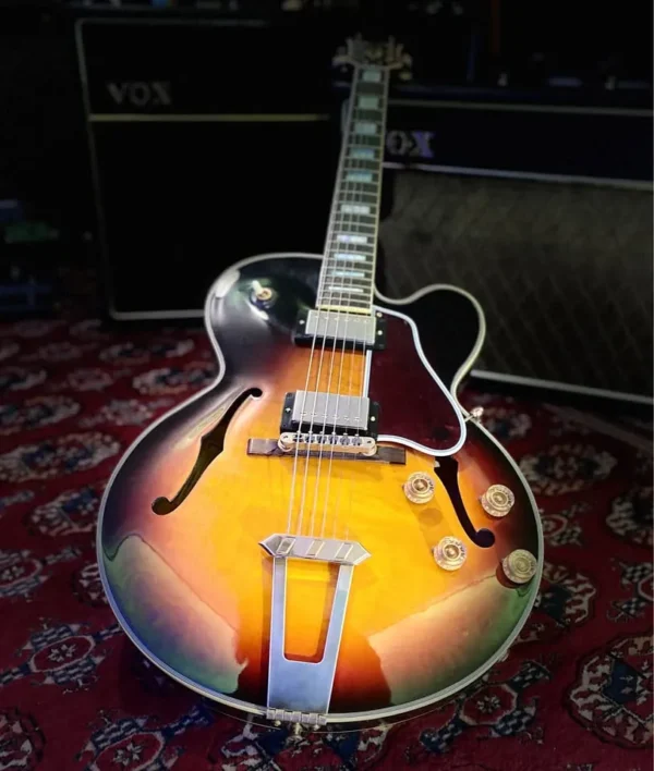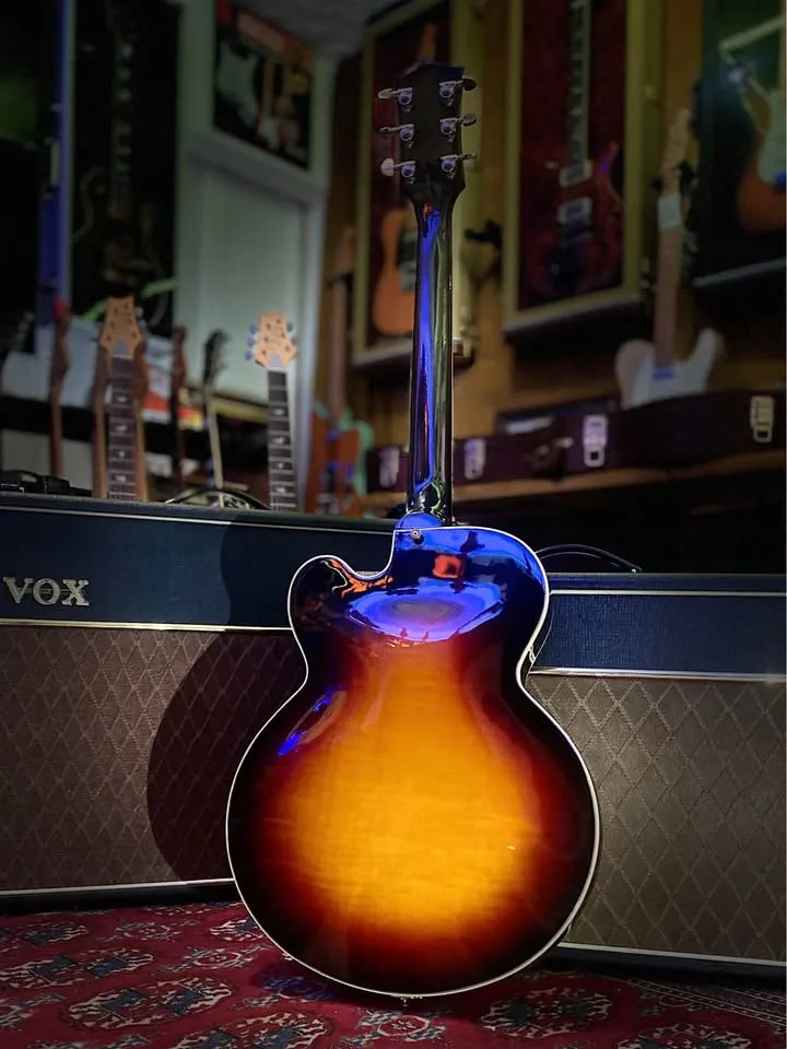 Vintage L-5 full hollow body styling Comfortable smaller thinner body Rounded C neck profile MHS Humbuckers Case candy in mint condition