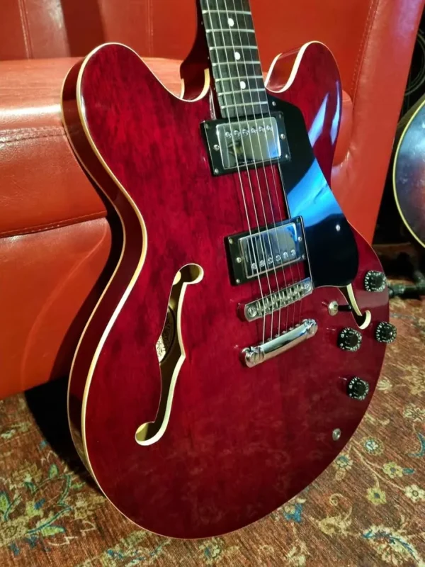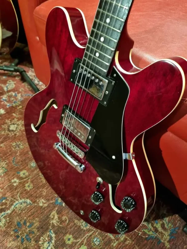 This beautiful cherry red 935 Deluxe, obviously an ES-335 copy, was very well kept since day 1. It’s almost saddening to see guitars like this, as it shows an inherited piece of someone’s passion for music, that was stored for many years, and not used to it’s full potential. On the other hand, it might also be a case of someone just really taking care of their belongings. But in the end, it’s a beautiful piece of guitar history, coming from the best guitar builders in Korea, and it will still be beautiful in the next 40 years.