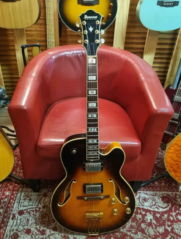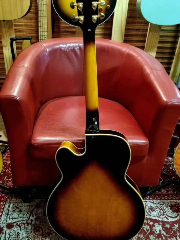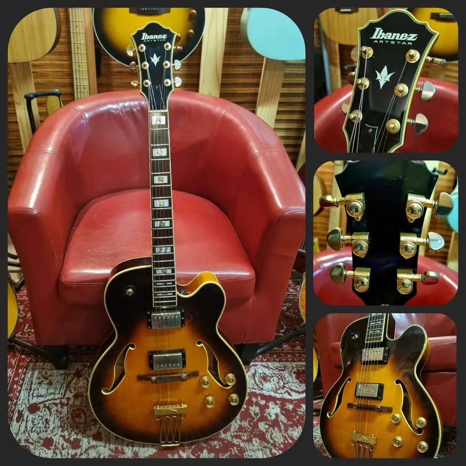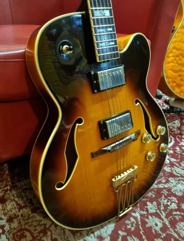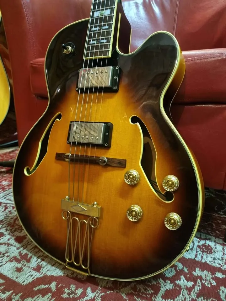 Beautiful vintage sunburst hollow body, built in Korea by the best luthiers and the finest woods. Stunning instrument, oozing with some stage character and charisma. The gold plating has faded over the last 24 years, but it’s part of the vintage look.