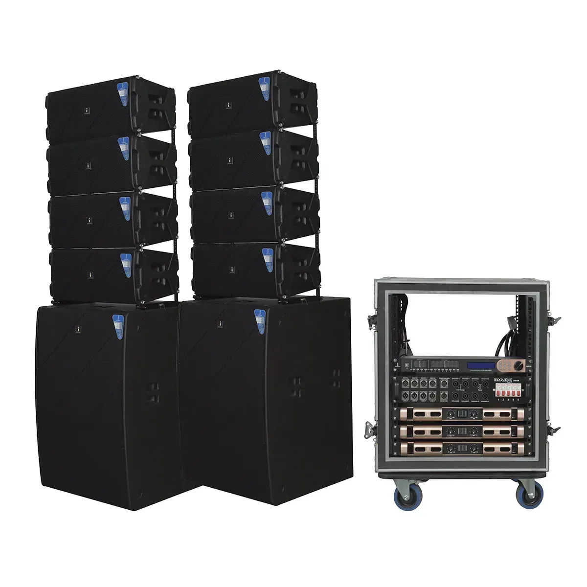 The IMIX LINE ARRAY COMBO is a high-performance professional sound system designed for live events, concerts, and large venues which offers a complete, high-power audio solution with exceptional fidelity and reliability for demanding professional applications. This combo features 8 x LA-2210 MK2 dual 10″ two-way compact line array speakers and 2 x LA-2218 MK2 dual 18″ compact line array subwoofers, delivering powerful, clear, and immersive audio across a wide frequency range.