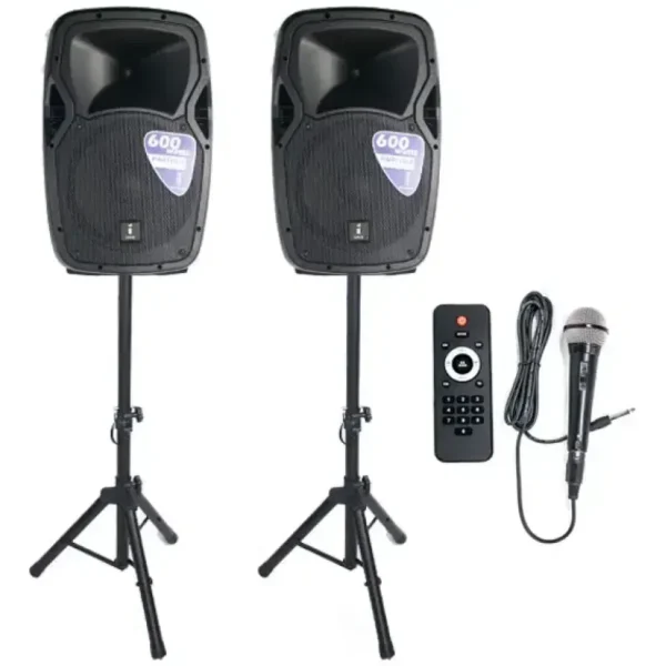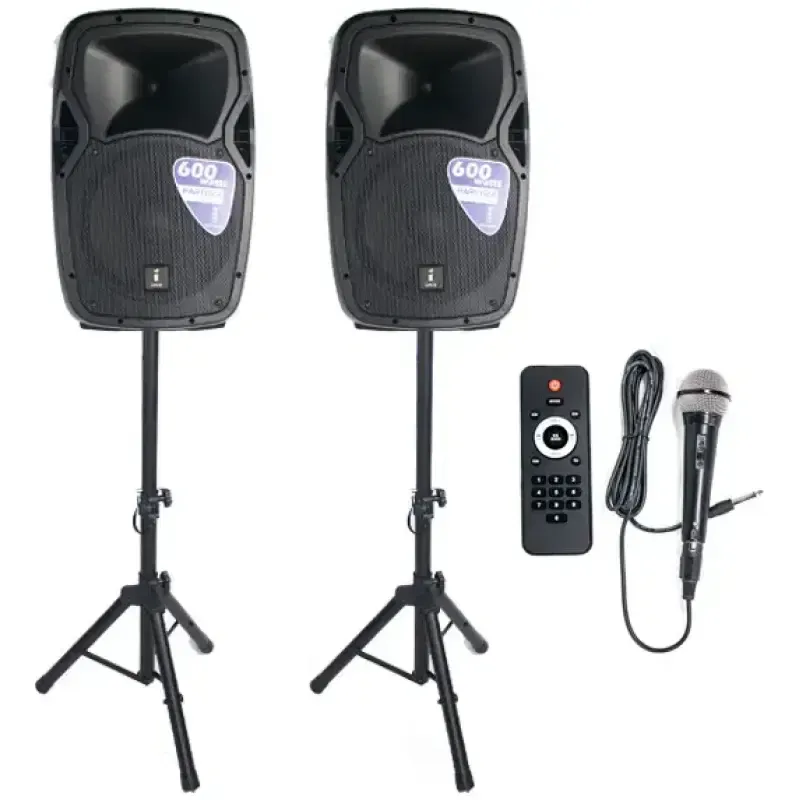 A compact yet powerful audio solution perfect for parties, events, and gatherings. This all-in-one system features a 12-inch active speaker and a 12-inch passive speaker both delivering exceptional audio clarity, crisp highs, and deep bass. Whether you’re hosting a lively get-together or providing background music for a professional event, this speaker ensures rich, dynamic sound for any occasion. The Imix Party 12 A set includes everything you need for seamless operation: a microphone for clear vocal delivery, a remote control for easy volume and track adjustments, and a 5-meter Speakon cable for secure and reliable connectivity. The remote control allows you to adjust the settings without leaving your spot, ensuring hassle-free control throughout your event.