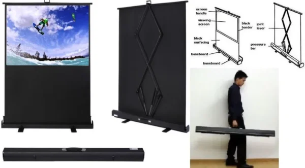 Esquire Scena Pull Up Projector Screen 54 inches – 1.2m X .0.68m Wide Screen 16:9 format , Matte White Screen Surface , Retail Box , 1 year Limited Warranty
