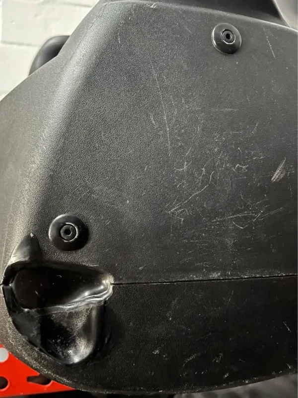 Burn mark on the corner of one speaker