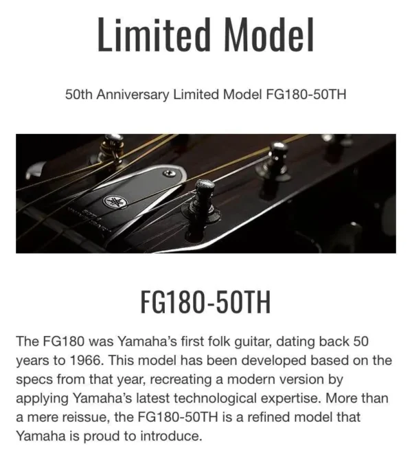 Limited-edition only 400 produced fashioned after Yamaha’s first FG-180 in 1966
